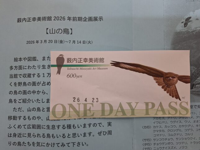 An exhibition titled 2026 Early Term Special Exhibition “Birds of the Mountains” has been held at the Yabuucni Masayuki Art Museum in Hakushu-cho in the city of Hokuto in Yamanashi Prefecture, Japan, during March 20 through July 14, 2026.