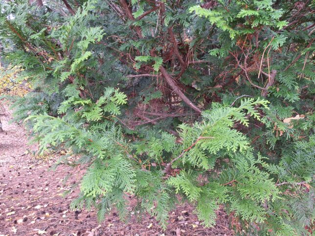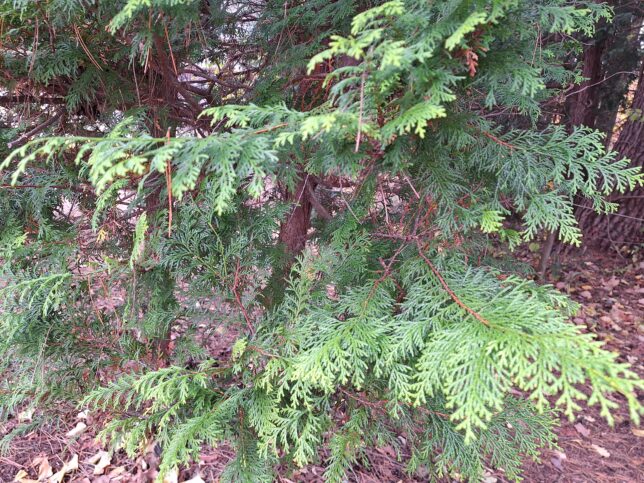 Northern white-cedar (Thuja occidentalis): https://en.wikipedia.org/wiki/Thuja_occidentalis