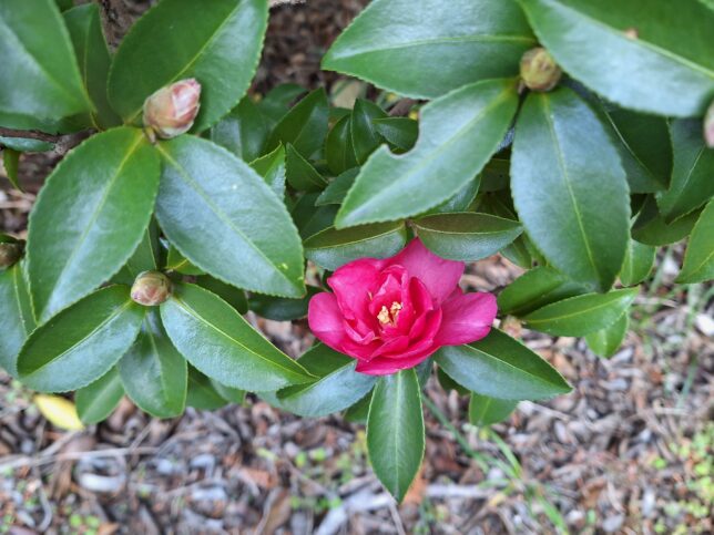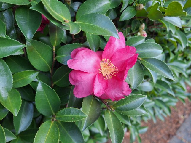 Sasanqua camellia (Camellia sasanqua): https://en.wikipedia.org/wiki/Camellia_sasanqua