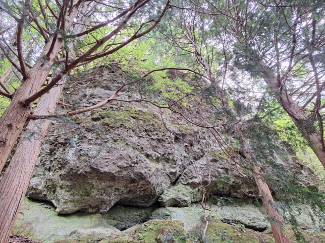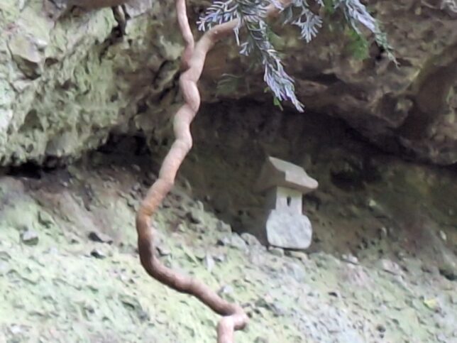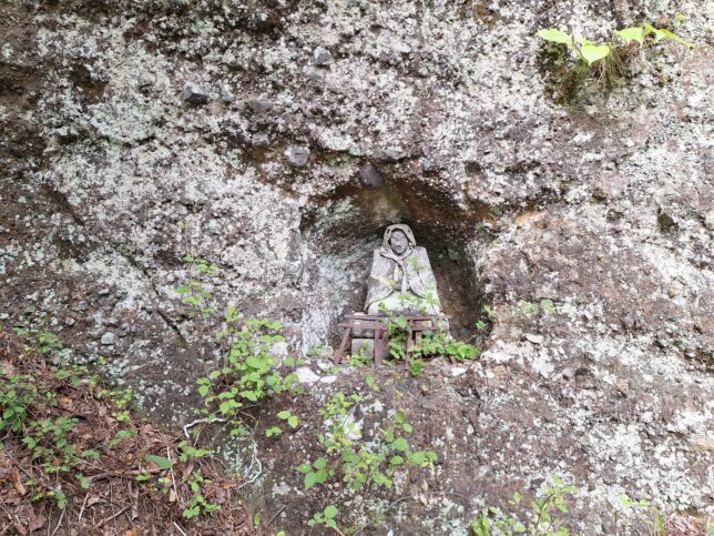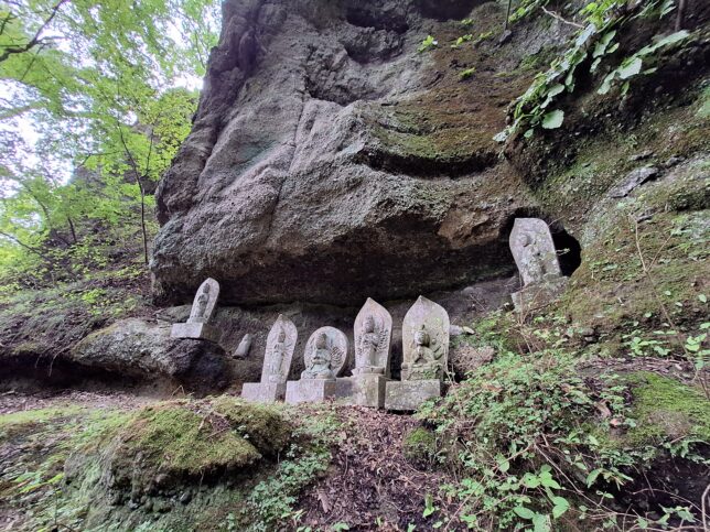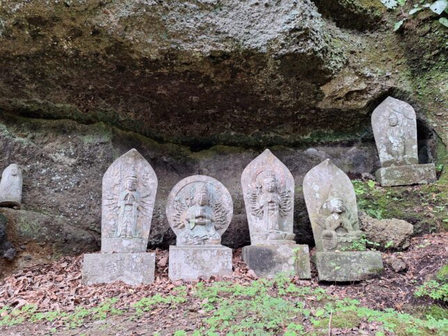 Sacred rock and statues of Takeda Fudoson (Achala Vidyaraja) and Kannon (Avalokiteśvara) and a shrine, Sekisuiji, Kofu, Yamanashi, 9/22/2025